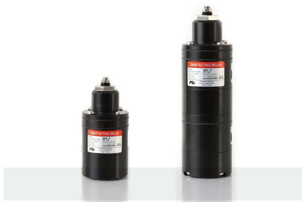 Snap Acting Relay is the device which is usually used with an air tank, converts an air flow direction and moves the valve to the fail-safe position when the signal air pressure is lower than the set air pressure.